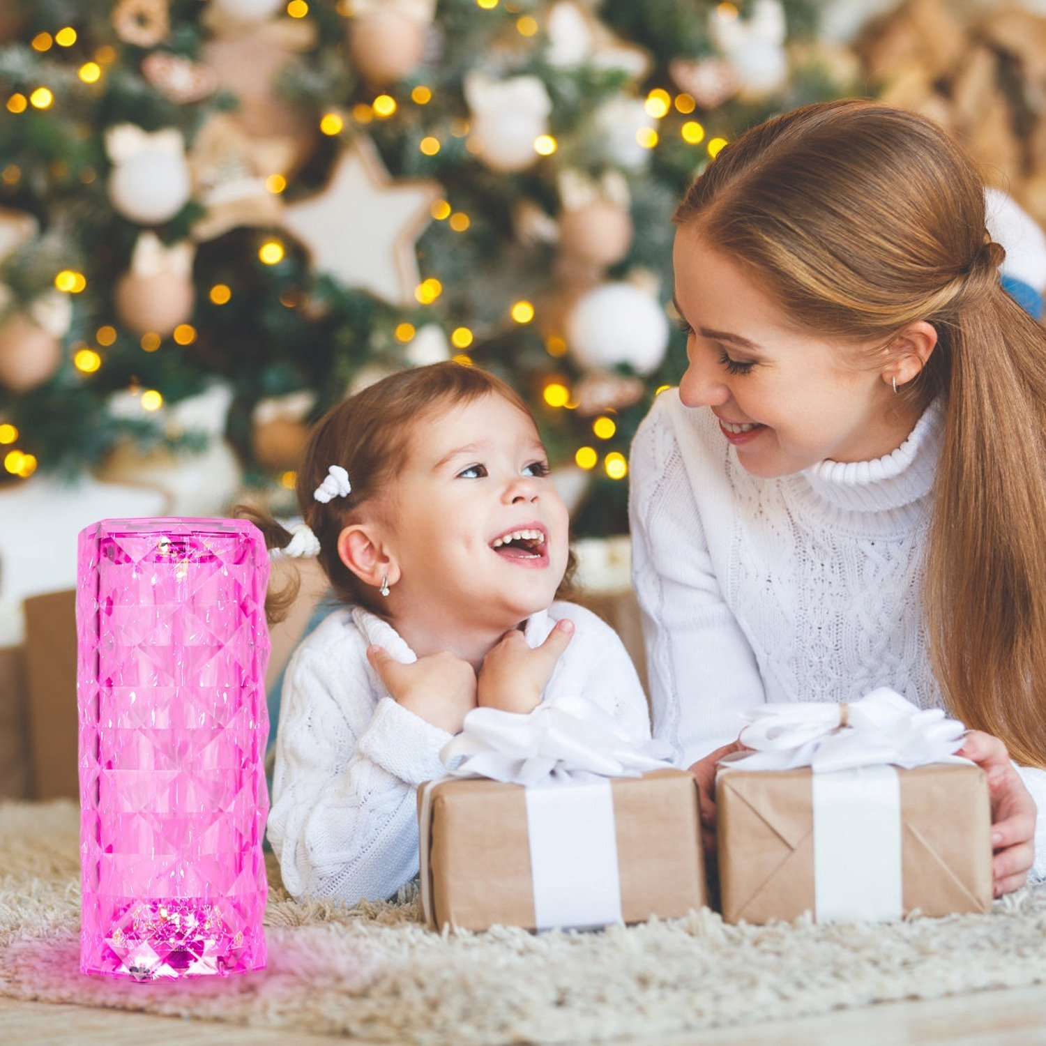 **Gorgeous Crystal Diamond Lamp*:A simple and modern luxury lamp,it shines like a diamond with special 3D technology. Turn on table lamp,3D visual effect is like a rose blooming on the table. The exquisite crystal lamp adopts diamond cut surface to show the gorgeous temperament,decorate your room and create a comfortable and romantic atmosphere.